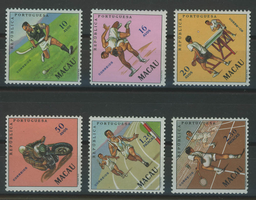 Makau - sport, dyscypliny sportowe. Czysta seria tematyczna. Bardzo wysoko wyceniana.