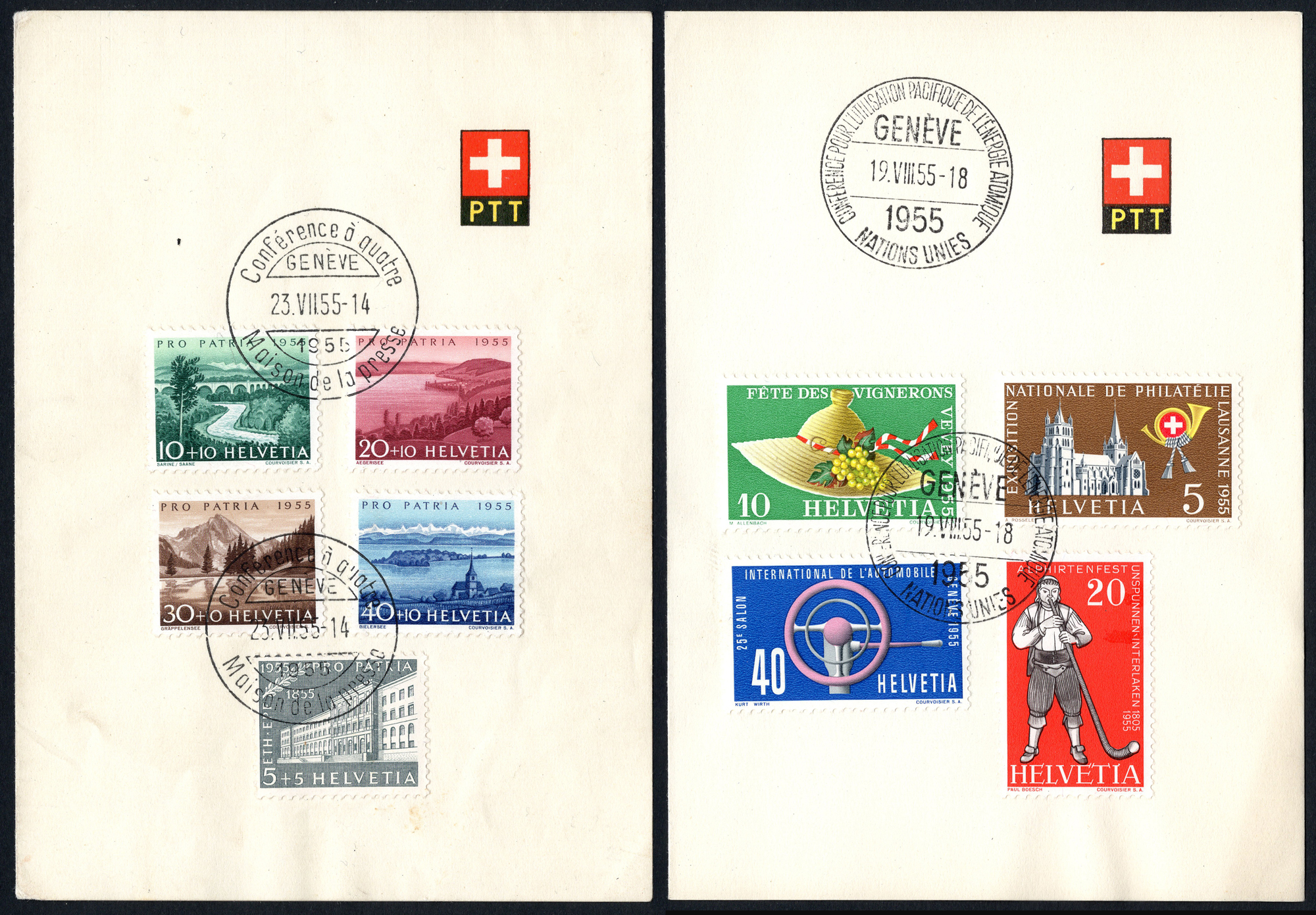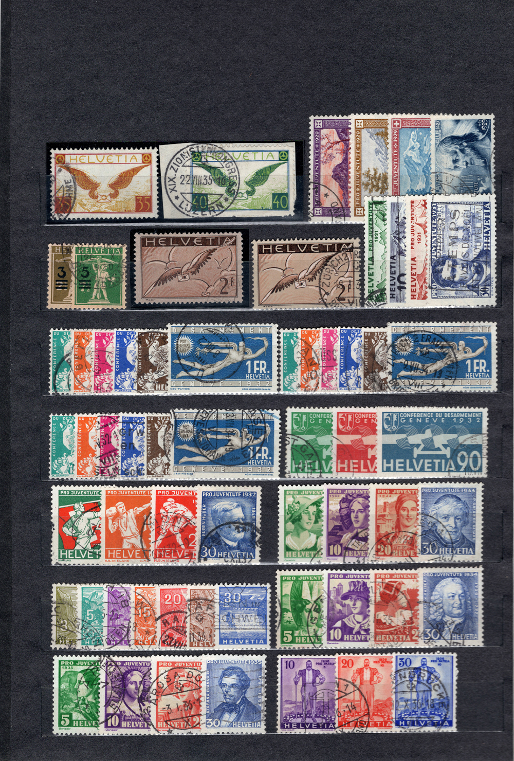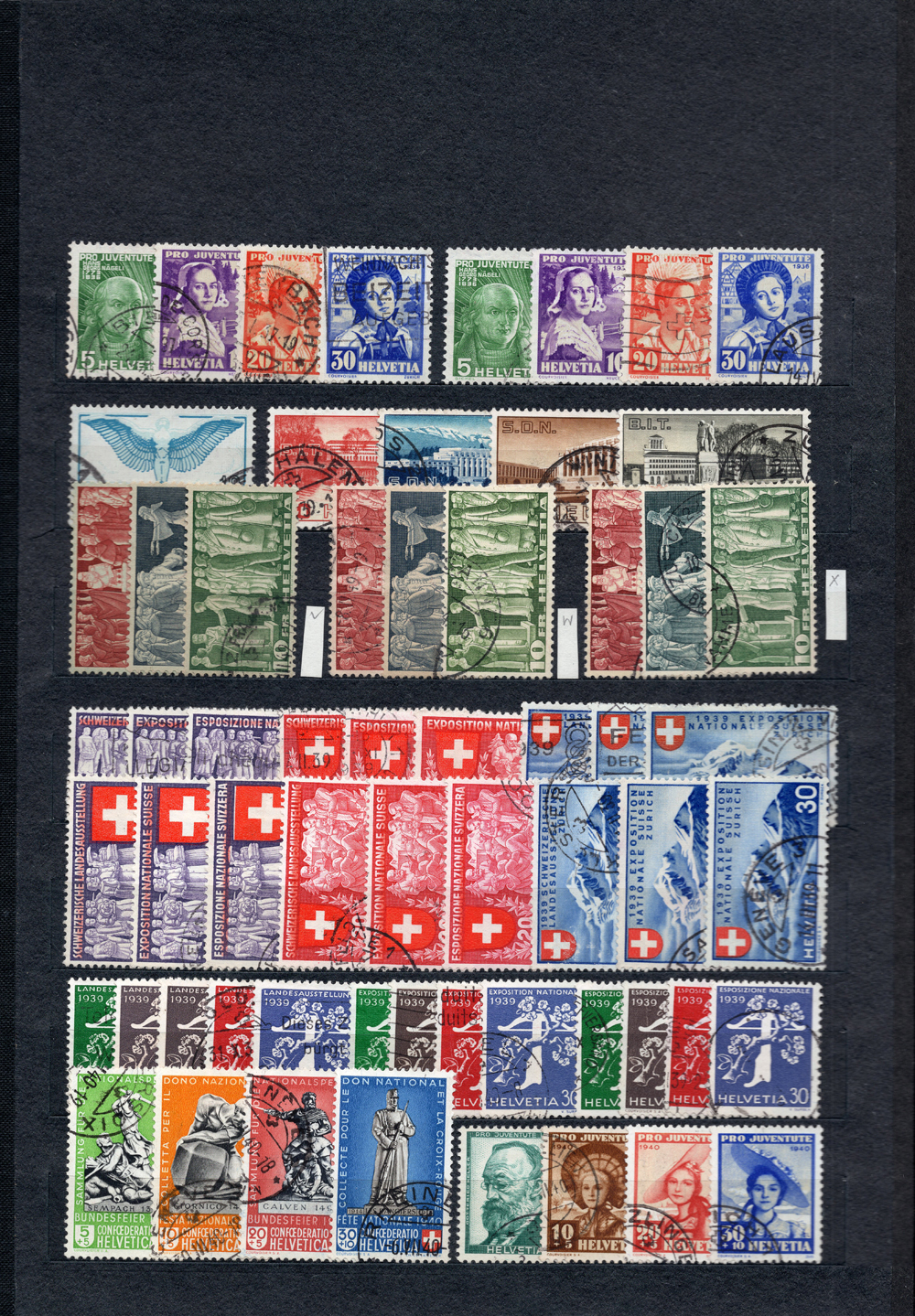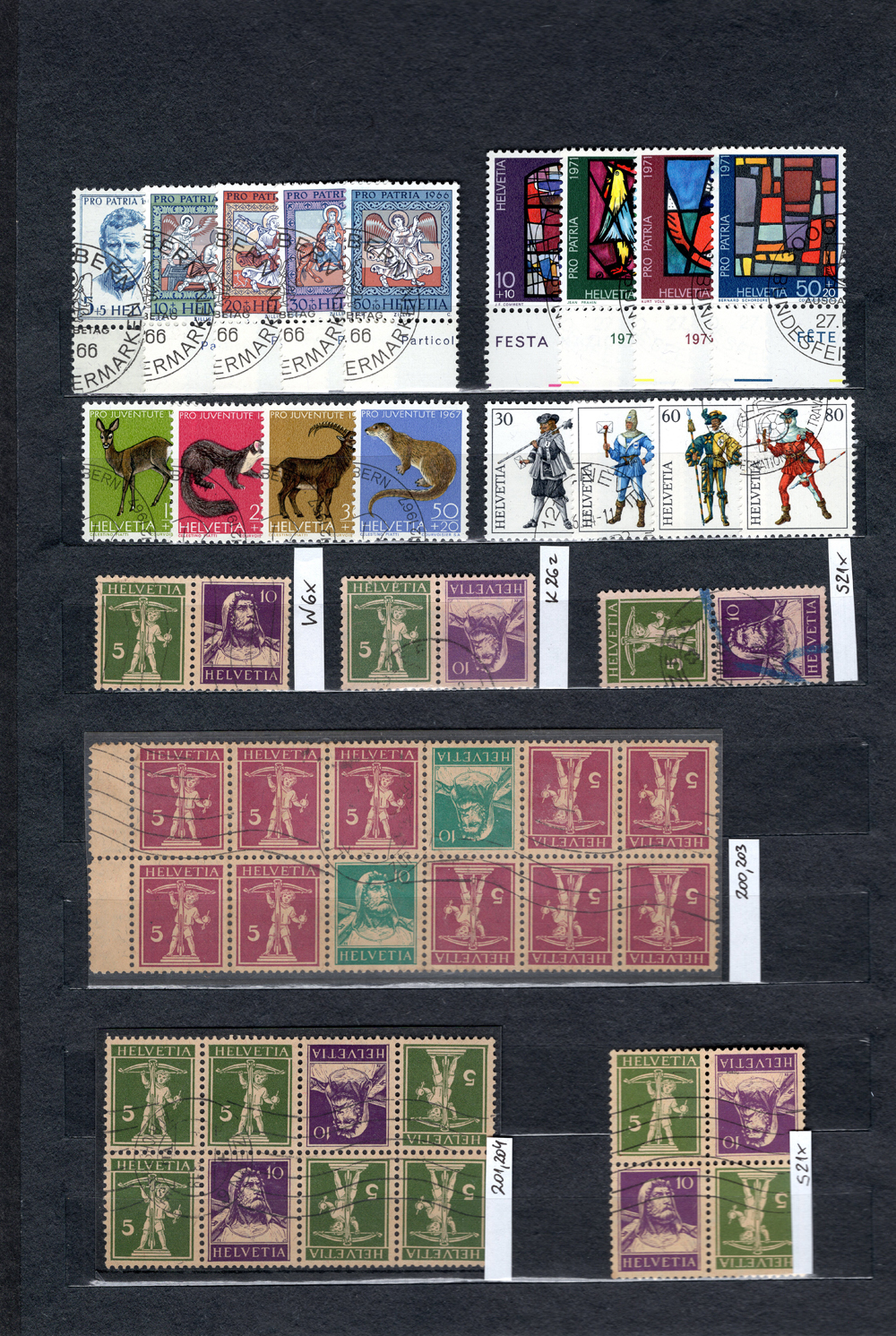 SZWAJCARIA. Zestaw znaczków kasowanych z lat 1854-1971. Starannie dobrane serie z czytelnymi w większości kasownikami. Jedynie datownik na znaczku 152, który został prawdopodobnie odklejony z okolicznościowej koperty, miał datę odbitą na tej kopercie. Zestaw zawiera dodatkowo kilka listów, ozdobnych kartek i kopert FDC.